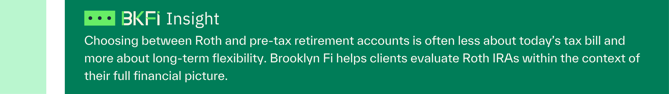 Understanding Roth IRA basics is only the first step. Brooklyn Fi works with professionals, founders, and families to build tax-aware financial plans that evolve as life and income change.